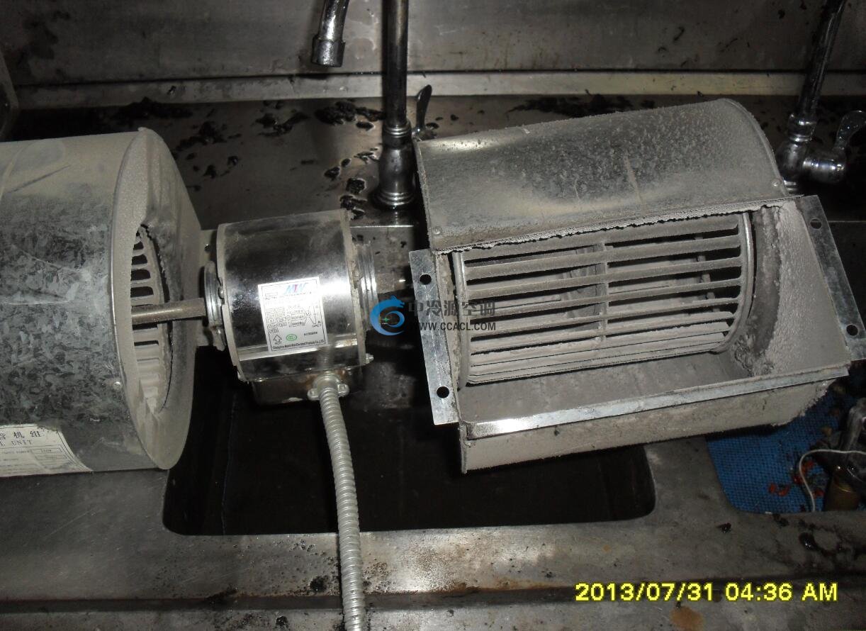 清洗風機鋁翅片的過程必須先拆卸風機馬達和葉輪,可以順帶對馬達、電容是否燒壞進行檢查。夏天制冷時,由于冷凝水多,在托盤中流入冷凝水排水管時,容易產生菌團和藻類,堵塞冷凝排水管,所以應對托盤進行清洗和殺菌滅藻等保養工作。