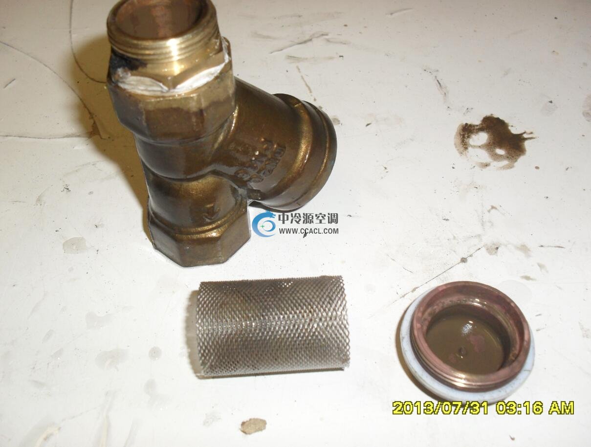 冷凍水管道上的Y型過濾器,已經全部堵塞,冷水無法循環